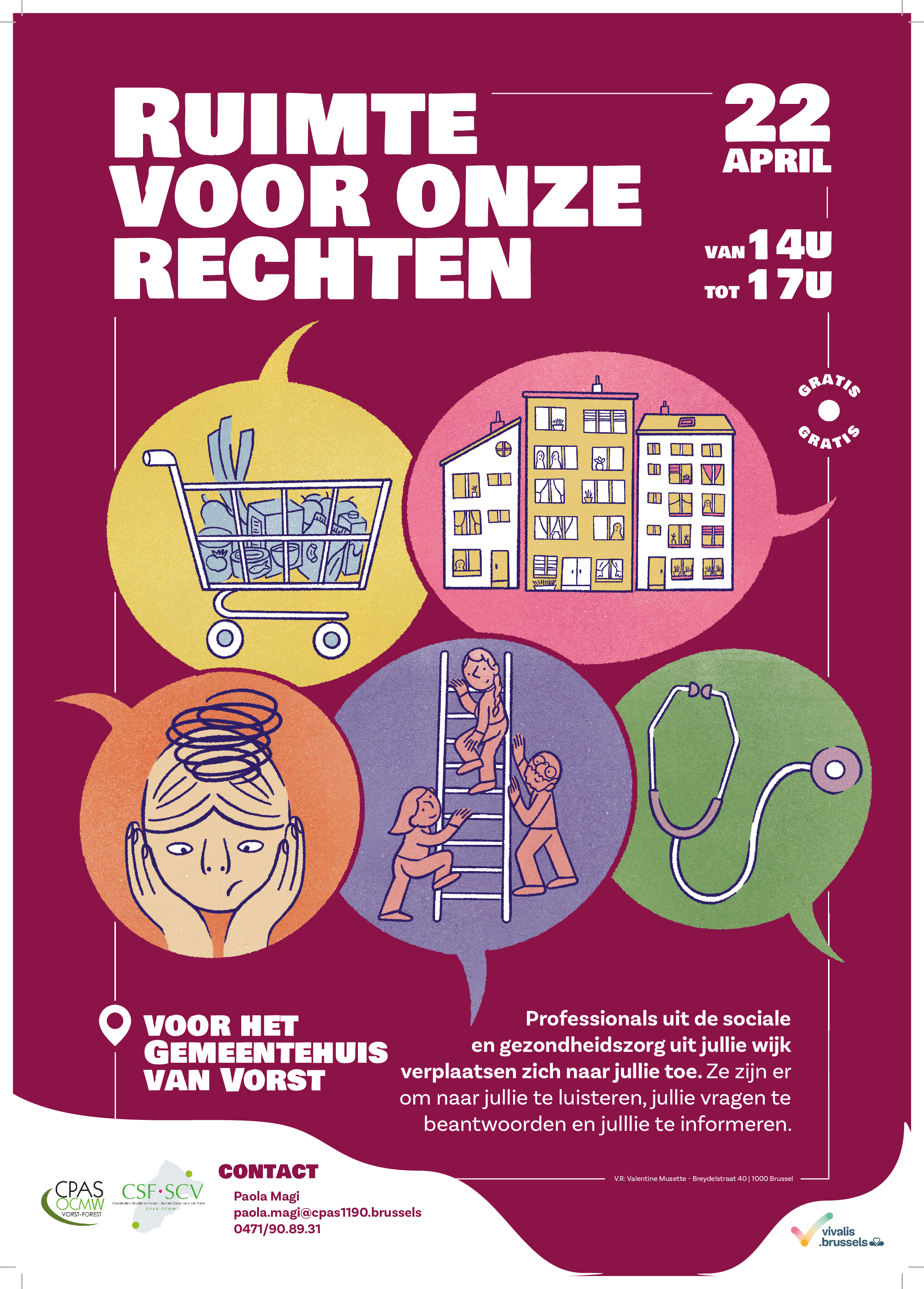 “Plaats voor onze rechten”: In Forest, op initiatief van de Sociale Coördinatie van Forest (OCMW) en Brusano Sud, zetten verschillende verenigingen en diensten zich in om u te helpen beter te begrijpen welke ondersteuning en diensten u kunt krijgen en hoe u er gemakkelijk toegang toe krijgt.